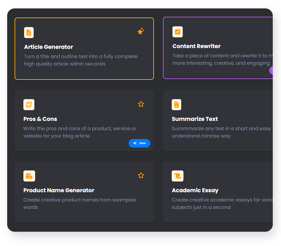 with Article GeneratorContent ImproverBlog ContentsAd CreationsText to SpeechAnd Many More!